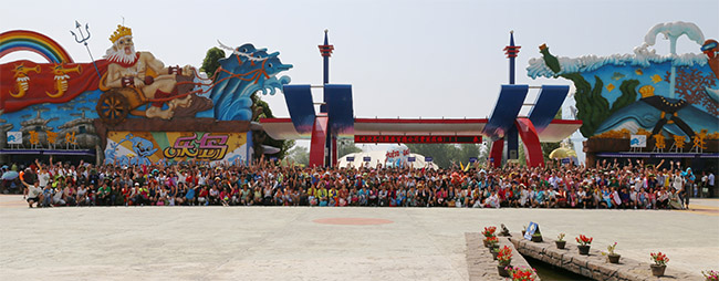 經(jīng)銷商們?cè)跇穽u海洋公園門前留影