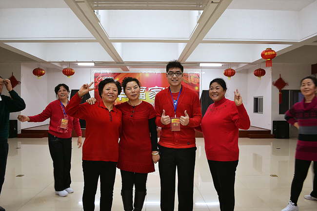 下午五點,歌曲《最美中國人》的演唱者“90后”北京男孩楊德朗一到盧龍,就來到排練現(xiàn)場。他的到來,讓整個排練場都沸騰了,大家都想與被網友譽為“最美的歌者”的帥氣小伙兒合影留念。為滿足大家的愿望,導演只好暫停排練,休息5分鐘。