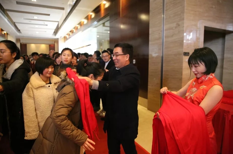 李銀祥董事長(zhǎng)和其他幾位領(lǐng)導(dǎo)在會(huì)場(chǎng)入口
