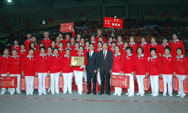 為了檢閱“全民健身 快樂同行”大型公益活動的成果,表彰大會特別安排了康姿百德健身操比賽環(huán)節(jié)。94個代表隊(duì)共3000多人,他們士氣昂揚(yáng)、精神抖擻地展現(xiàn)著自己的風(fēng)采。各個方隊(duì)身著色彩鮮艷的運(yùn)動服裝,手持彩旗,動作整齊劃一,場面蔚為壯觀。展演比賽的隊(duì)員中既有80歲老人也有8歲的孩童,真正體現(xiàn)了全民健身的精神,康姿百德健身操的普及,讓康姿百德“立體健康”概念深入人心。經(jīng)過1個多小時的風(fēng)采展示,山東濱州晚霞隊(duì)拔得頭籌,榮獲一等獎;北京順義隊(duì)、北京通州隊(duì)榮獲二等獎;北京門頭溝隊(duì)、河北武安夕陽紅隊(duì)、北京昌平隊(duì)榮獲三等獎。