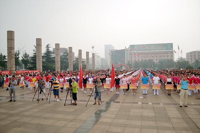 8月2日上午,邯鄲武安市武安廣場五彩斑斕、人聲鼎沸。隨著熟悉的節(jié)拍,一支支代表隊(duì)舞動著優(yōu)美的舞姿,精神飽滿,動作整齊,數(shù)千人徜徉在一片舞的海洋之中,盡情享受康姿百德健身操帶給人們的健康和快樂。