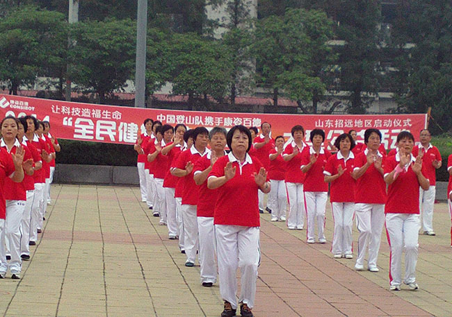 8月8日,山東招遠(yuǎn)的700多名康姿百德健身操愛(ài)好者和當(dāng)?shù)厥忻?,在市政府廣場(chǎng)載歌載舞,喜迎“全民健身日”,向人們倡導(dǎo)康姿百德公司提出的“健康睡眠+適量運(yùn)動(dòng)+合理飲食”的立體健康理念,傳遞著健康向上的正能量。 當(dāng)天上午8:30分,由當(dāng)?shù)乜底税俚聭敉饨∩頎I(yíng)組織舉辦的2014“全民健身 快樂(lè)同行”大型公益活動(dòng)招遠(yuǎn)地區(qū)啟動(dòng)儀式在這里隆重舉行,招遠(yuǎn)經(jīng)銷商向廣大市民宣布了本次活動(dòng)的目的和意義,當(dāng)?shù)乜底税俚陆∩頎I(yíng)隊(duì)員進(jìn)行了健身操表演,贏得了在場(chǎng)觀眾的普遍贊賞。大家一致認(rèn)為,康姿百德健身操節(jié)拍有力,動(dòng)作到位,音樂(lè)優(yōu)美,具有適宜人群廣泛、簡(jiǎn)單易學(xué)的特點(diǎn),是市民健身鍛煉的好項(xiàng)目,今后要加入到這個(gè)健身隊(duì)伍中,為推廣全民健身貢獻(xiàn)力量。 本次活動(dòng)得到了當(dāng)?shù)赜嘘P(guān)部門和媒體的重視,招遠(yuǎn)市老體協(xié)等單位領(lǐng)導(dǎo)出席了啟動(dòng)儀式,招遠(yuǎn)新聞對(duì)本次活動(dòng)進(jìn)行了報(bào)道。
