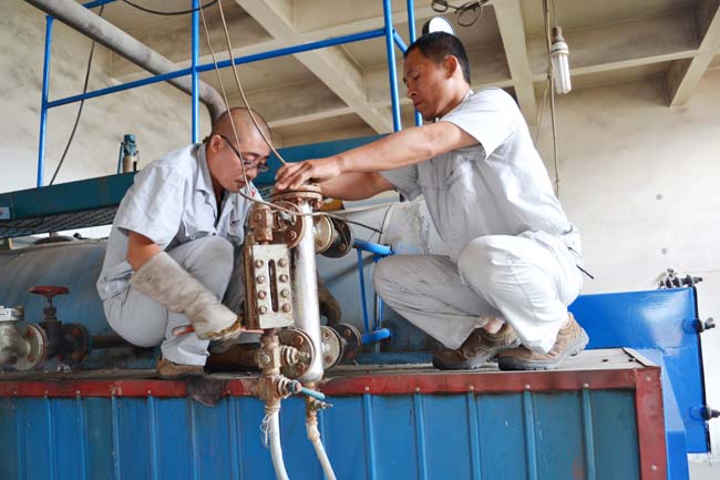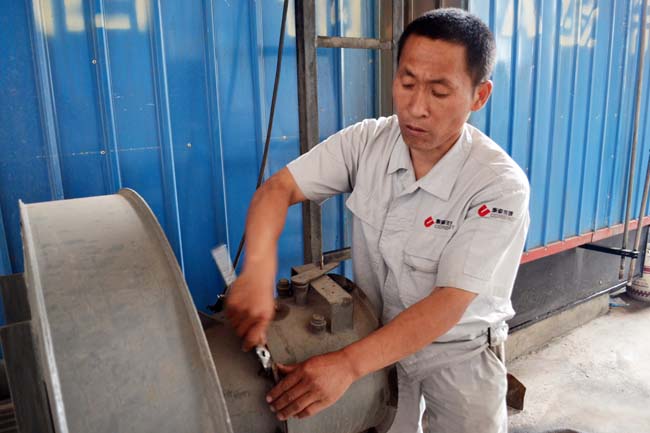 馮國成在給工友講解維修注意事項 在本職崗位上,他緊密聯(lián)系工作實際,堅持刻苦鉆研業(yè)務(wù),攻克了生產(chǎn)中存在的許多技術(shù)難題。充分發(fā)揮了勞模的骨干和帶頭作用,支持和幫助其他工友提升業(yè)務(wù)素質(zhì)。瞧,他身邊這位全神貫注的年輕人,沒準兒就是下屆的勞動模范呢!