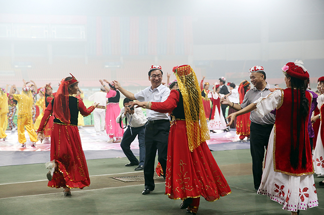 全場互動跳新疆舞 中央電視臺、中國體育報、科技日報、健康時報、北京電視臺、秦皇島電視臺等多家新聞媒體應邀出席會議,參與活動的現(xiàn)場宣傳報道。 |
