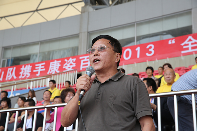 中國奧委會副主席段世杰宣布健身操比賽開始 下午1時30分,大會正式開始,由40多名康姿百德公司督導師組成的紅旗方隊拉開了表演活動的帷幕。伴隨著《走向復興》雄壯渾厚的樂聲,一面長38米、寬16米的紅色大旗,在督導師們嫻熟而又整齊的揮舞下,猶如一艘航行在大海上的巨輪,時而緩緩前行,時而乘風破浪,印記了康姿百德公司一路風雨兼程、不斷發(fā)展壯大的輝煌歷程。當紅旗上“康姿百德全民健身快樂同行”12個白色大字完全映入人們眼簾時,現(xiàn)場觀眾不僅因為督導師們的精彩表演而興奮,更被康姿百德一路走來風雨彩虹的歷練而感動,心靈深處受到了一種強大的鼓舞和震撼。
