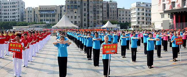 9月28日,贛州康姿百德戶外健身營攜手章貢區(qū)委老干部局、章貢區(qū)體育局、章貢區(qū)老年體協(xié),在章貢奧林匹克廣場舉行了以“健身家園 最美夕陽”為主題的康姿百德健身操展演活動,廣大老年朋友歡聚一堂,喜迎國慶節(jié)和重陽節(jié)的到來,暢享健康幸福新生活。 本次活動共有15個代表隊、600多名康姿百德健身操愛好者參加,大家在《開門紅》、《中國美》等優(yōu)美的旋律下,舞動健康,舞動精彩,展示了老年朋友積極向上的生活熱情,向全社會倡導(dǎo)“老有所樂、老有所為”的生活情趣,在當(dāng)?shù)禺a(chǎn)生了良好的反響。贛州電視臺、章貢區(qū)電視臺對本次活動進(jìn)行了新聞報道。