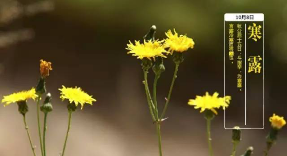 從字面上看,寒露的“寒”就是寒冷,“露”則表示了近地面水汽凝結(jié)成露水的現(xiàn)象。但從氣象角度來看,寒露節(jié)氣和白露、霜降這兩個節(jié)氣一樣,所表示的熱量變化意義比它的水分變化意義更為明顯。應(yīng)該說,寒露更多地體現(xiàn)了一種氣溫轉(zhuǎn)變,季節(jié)轉(zhuǎn)換的過程。