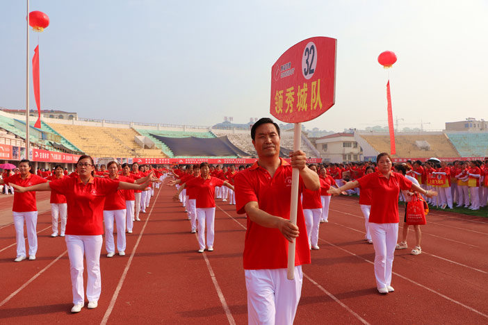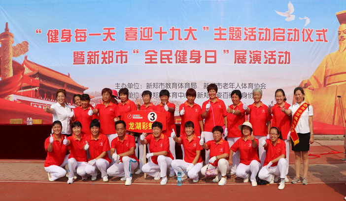2017年8月6日,“健身每一天、喜迎十九大”主題活動暨新鄭市全民健身日展演活動在河南鄭州新鄭市體育中心舉行。