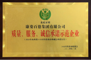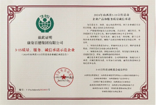 康姿百德被山西 315 宣傳活動(dòng)組委會(huì)授予