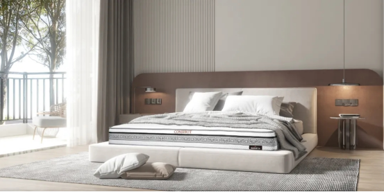 回形紋是中國(guó)傳統(tǒng)的吉祥圖案,象征著永恒和連綿不斷的生命力??底税俚虑逖趴畲矇|圍邊用“回形紋”加以點(diǎn)綴,賦予了吉祥如意、福運(yùn)綿綿的美好寓意,展現(xiàn)了中式美學(xué)與現(xiàn)代寢具的交融之美。同時(shí)也增強(qiáng)了床墊整體的精致感。