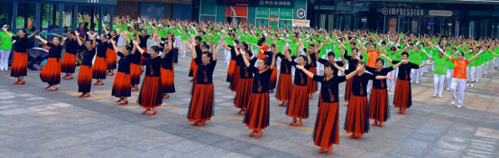 健身操愛好者身著統(tǒng)一服裝,和著動感歡快的音樂,踏著輕快自信的舞步,以飽滿的熱情、流暢的動作、豐富的表現(xiàn)力,為大家呈現(xiàn)出一場肢體與律動的完美盛宴。展演現(xiàn)場吸引了眾多群眾駐足圍觀,讓大家充分感受到了全民健身的快樂與魅力,也贏得了在場觀眾的陣陣掌聲。