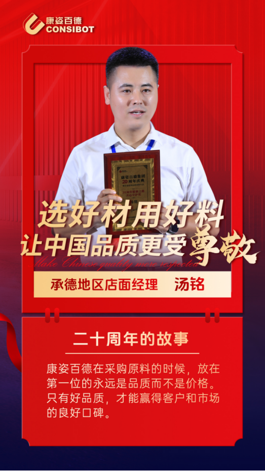 今年是康姿百德集團(tuán)成立20周年。在20年的發(fā)展歷程中,涌現(xiàn)出一大批在生產(chǎn)發(fā)展、原料采購(gòu)、質(zhì)量管控、經(jīng)營(yíng)管理、售后服務(wù)等各個(gè)領(lǐng)域立足崗位、奉獻(xiàn)建功的優(yōu)秀代表。讓我們一起看看這些榜樣故事。本期帶你走進(jìn)康姿百德承德地區(qū)店面經(jīng)理湯銘。