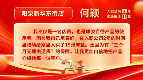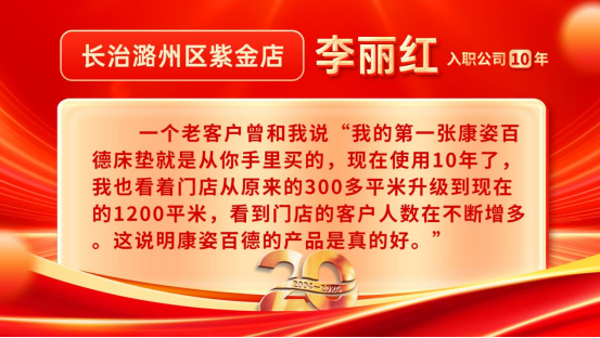 康姿百德20周年專賣店員工的系列故事會(huì)持續(xù)推出,讓我們一起期待其他地區(qū)專賣店員工代表的精彩故事吧!