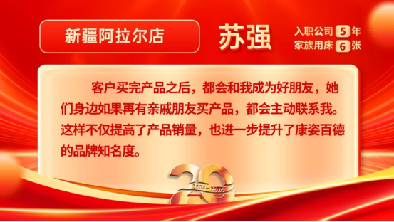 康姿百德20周年專賣店員工的系列故事會持續(xù)推出,讓我們一起期待其他地區(qū)專賣店員工代表的精彩故事吧!