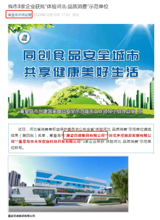 秦皇島市場(chǎng)監(jiān)管部門于12月10日在公眾平臺(tái)公布了本市第四批“體驗(yàn)河北·品質(zhì)消費(fèi)”示范單位入選名單,康姿百德集團(tuán)榜上有名。