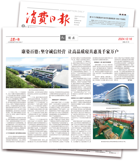 《消費日報》于1985年創(chuàng)刊,由國務(wù)院國有資產(chǎn)監(jiān)督管理委員會舉辦,中國輕工業(yè)聯(lián)合會主管主辦。今年2月,消費日報以“康姿百德:保護消費者合法權(quán)益 助力營造誠信消費環(huán)境”為題,對康姿百德進行了專版報道。
