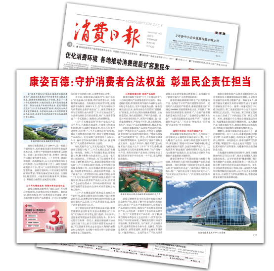 《消費日報》于1985年創(chuàng)刊,由國務院國有資產監(jiān)督管理委員會舉辦,中國輕工業(yè)聯(lián)合會主管主辦??底税俚路e極響應國家號召,主動維護消費者合法權益,僅2024年,消費日報就2次對康姿百德進行了專版報道。