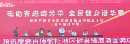 康姿百德集團(tuán)銷(xiāo)售公司副總監(jiān) 惠鵬,山西晉中地區(qū)、太原地區(qū)總經(jīng)理 趙淑敏,山西晉中榆社地區(qū)總經(jīng)理 田青,榆社縣體育發(fā)展中心主任 原晉宏,榆社縣老年體育協(xié)會(huì)主席 郝德如,榆社縣老年體育協(xié)會(huì)副主席 李建新,健身操愛(ài)好者代表 張眉珍共同出席了本次活動(dòng)。