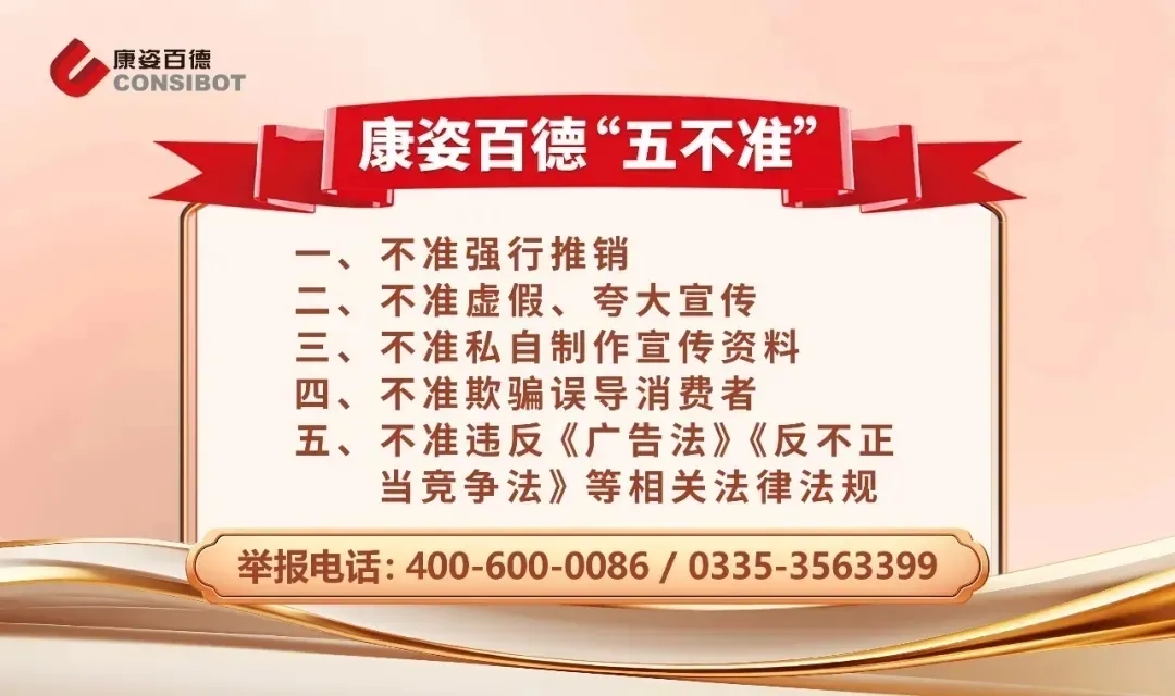 為切實維護消費者權(quán)益,康姿百德加大了內(nèi)部巡查力度,多頻次、不定期開展線下門店市場巡查活動,嚴格監(jiān)督門店工作人員的經(jīng)營行為。同時,要求各專賣店懸掛“五不準”宣傳標識,明令禁止強行推銷、夸大宣傳、過度承諾等損害消費者權(quán)益的行為。