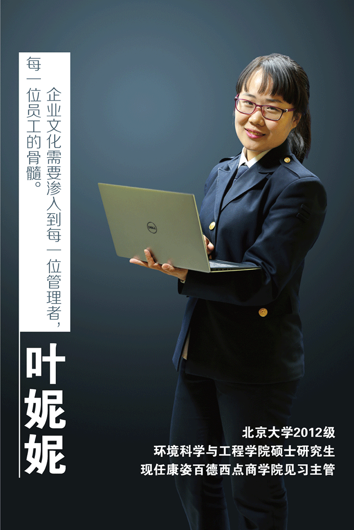 葉妮妮,北京大學2012級環(huán)境科學與工程學院碩士研究生,現(xiàn)任康姿百德西點商學院見習主管。